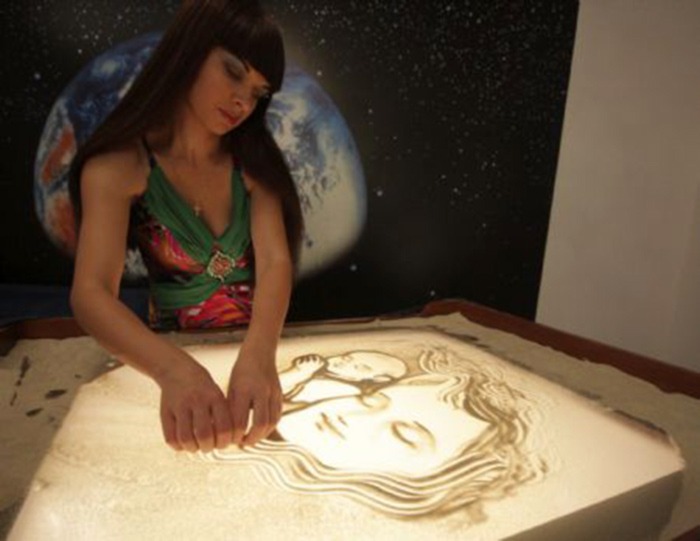 hay un cuadro hecho con pinturas, la luz opacó los colores, ya no es posible identificar la